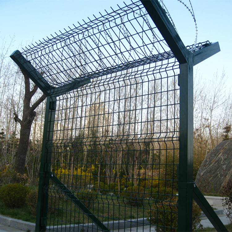 防攀爬护栏网一般采用5.0mm的优质低碳钢丝焊接;网孔(mm) 50x100 50x150 50x200网片中带有Y型加强筋可增强护栏网的抗冲击力。立柱为60X60矩形钢,顶端含有Y型支架或者采用70mmX100mm的挂式连接立柱,网片链接采用特制SBS扣件,有效防止人为破坏性拆卸,产品均为热镀锌后采用高质量的聚酯粉末静电喷涂,采用国际流行的RAL颜色。