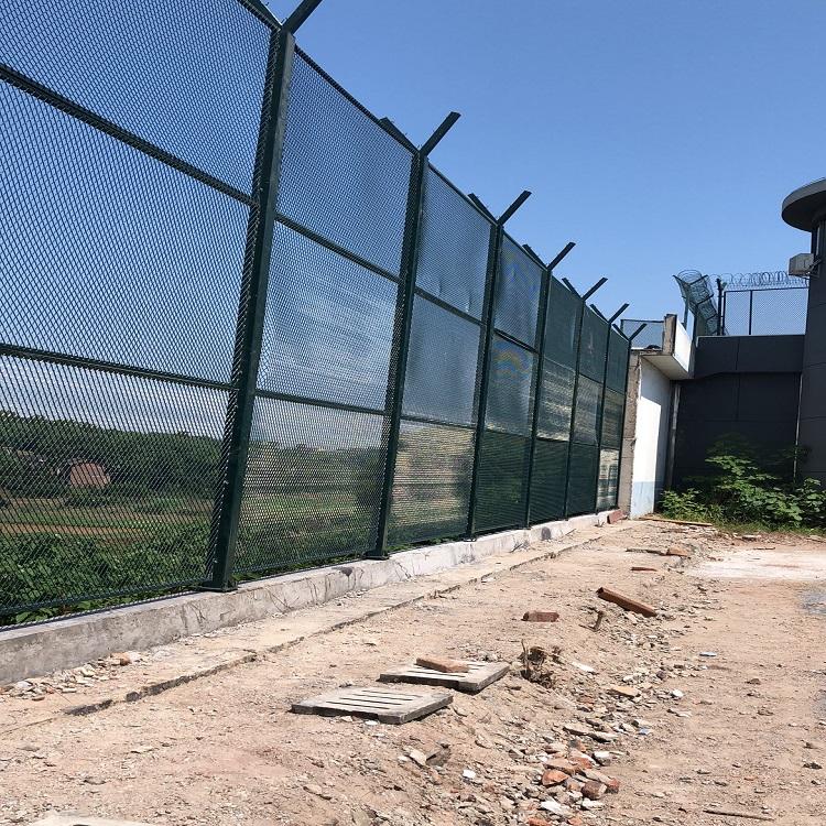 监狱隔离网是一种新型防护网,由锐利尖角镀锌钢板或不锈钢薄板做刀片,钢丝做芯线组合而成的防护器材。看守所隔离网一般顶端都设有V型支架与立柱焊接。材料通常选择和立柱同等材料或者稍小规格材料搭配使用。V型支架的加装是为了将蛇腹形刀刺网固定在隔离网顶部。监狱隔离网的施工方案:首先是立柱固定,一般分为两种,第一种:地面为土质结构,这时候可以考虑预制混凝土基础并预埋,也可以直接挖坑将立柱用混凝土浇筑。通常在预制混凝土里面预埋4个地脚螺栓,用以固定立柱底部的法兰盘。
