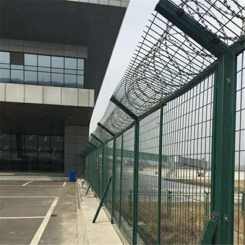 机场围栏网又称作“Y型安全防御护网”,是由V型支架立柱加强型焊接片网,安全防盗连接件和热镀锌刀片刺网组成强度和安全防御性级别很高。被广泛应用在机场,军事基地等高安全场所。